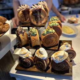 Great spot for coffee and pastries. They have the viral supreme croissants if you've got a hankering for those. However, their croissants did not have the crunch I was looking for, although the flavor was pretty nice. All positive notes for the coffee though; would get again. Service was on point, and the restaurant is decorated perfectly -- definitely enjoyed the environment. Would love to go back for dinner or a full brunch!